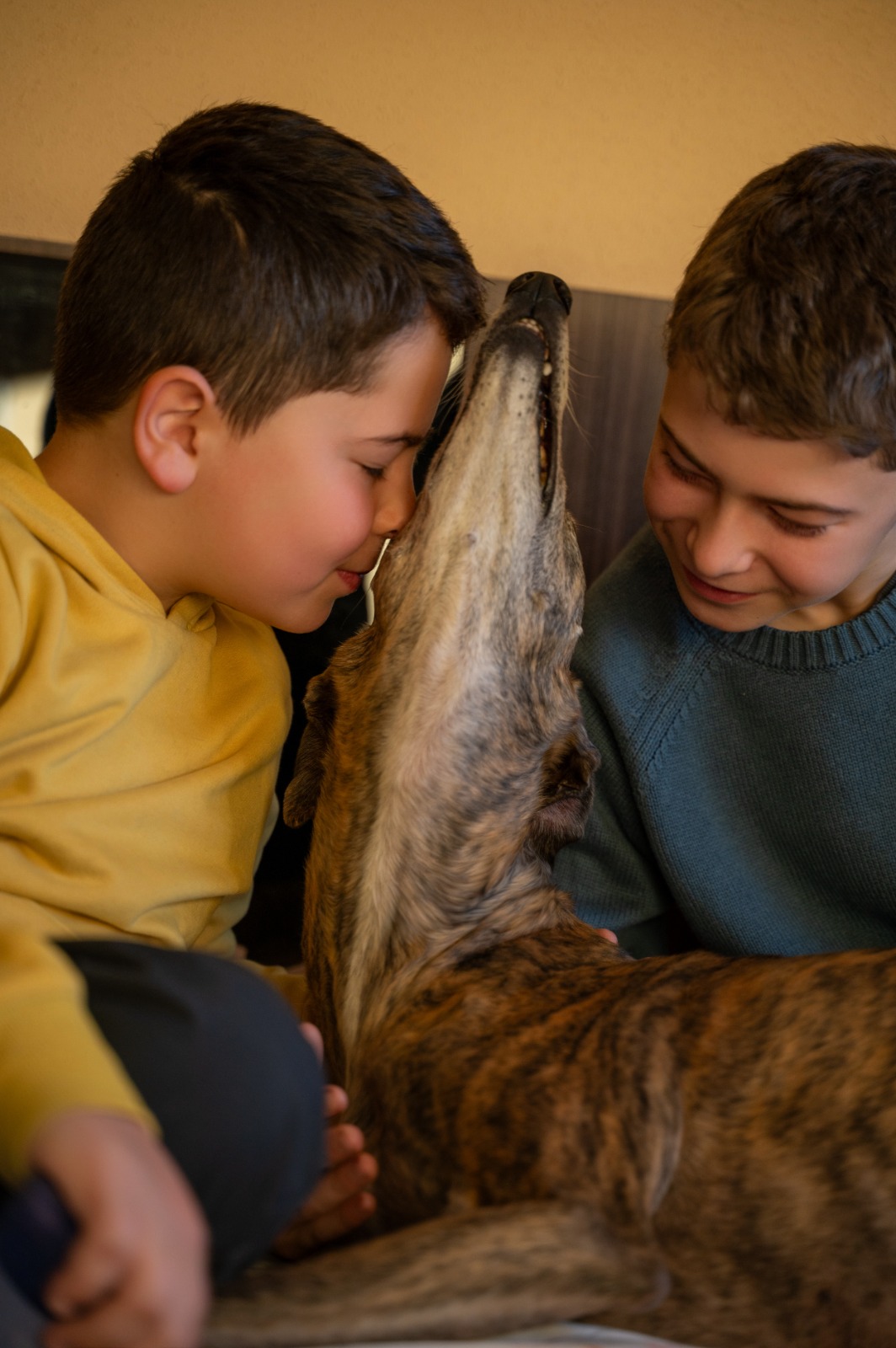 Las mascotas son parte de la familia, y a menudo son las que nos dan más amor incondicional. Capturar esos momentos, aunque a veces un poco locos, es lo que hace que esas fotos sean especiales.